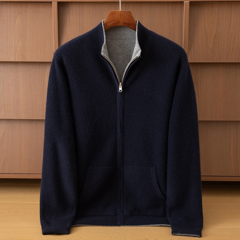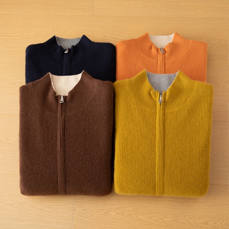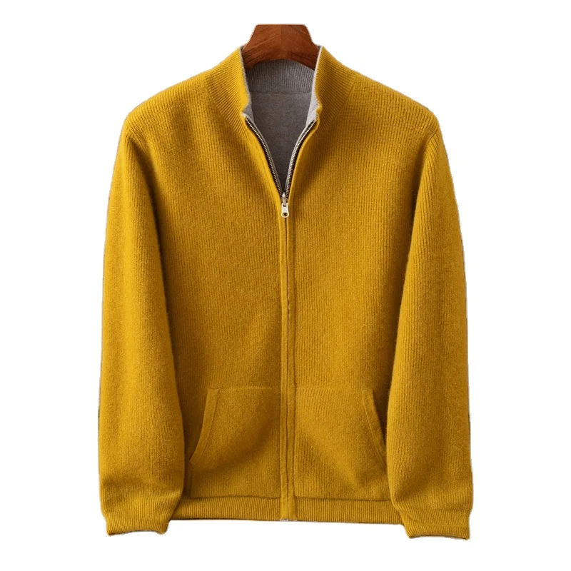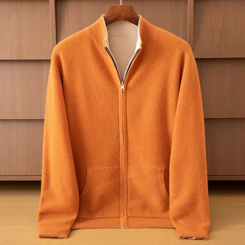Long Sleeve Light Brown Knit Coat Men's Winter Zipper Sweater with Cardigan Sweater Design ODM Supply Cashmere